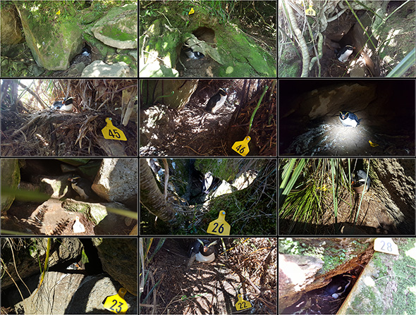 It was particularly good to see, that the ‘apartment building’ is once again fully occupied by tawaki. Last year, the area was completely devoid of nests. Because of stoats stealing eggs and chicks prior to our arrival as we later learned from camera trap footage. Maybe the Jackson Head tawaki will have a bit of an advantage this season though, as the Department of Conservation this year has installed two traplines along the peninsula in an effort to control stoat numbers. We will see if that helps!