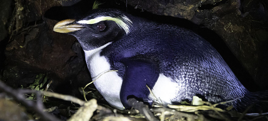 In the late afternoon the Tutoko dropped us off on one of the Shelter Islands which sit exposed right at the entrance if the fjord. Landing there is a bit of a nightmare but once we were in the forest, tawaki land greeted us with a penguin version of Hobbiton. Most penguins breed in ‘holes in the ground’ under a canopy of intricate tree root tangles. And quite a few of them were sitting on young chicks.