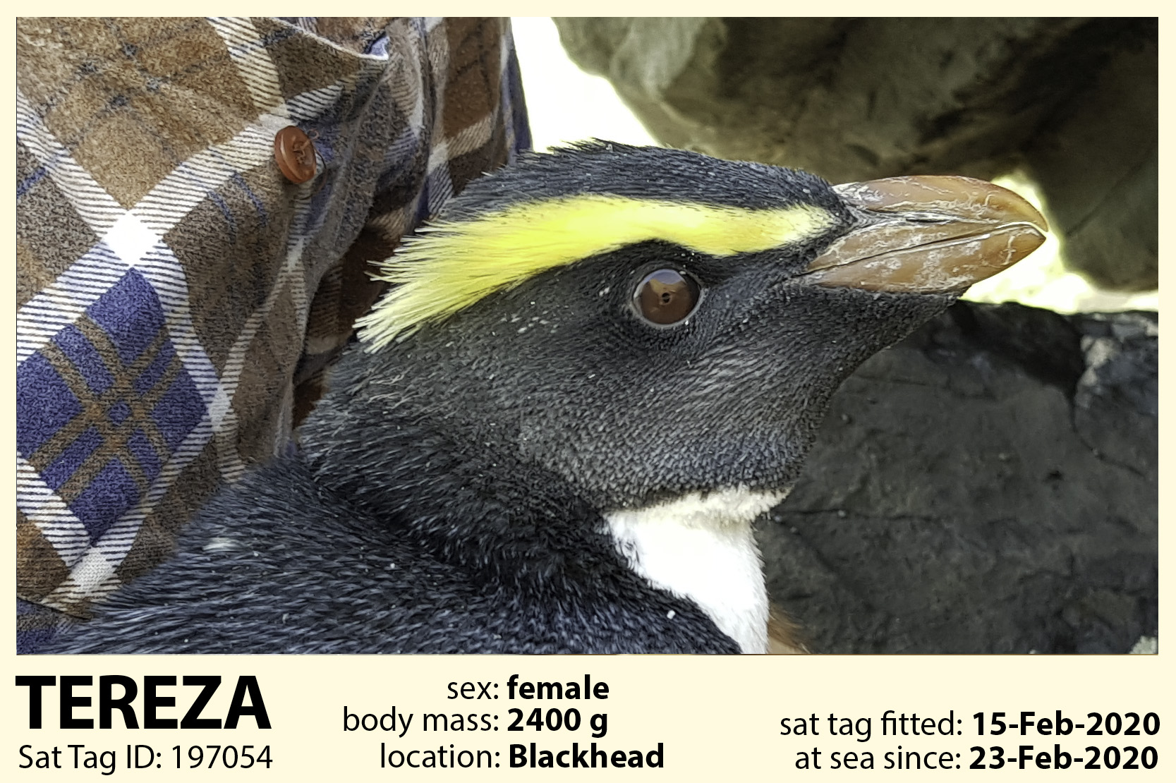 The third weekend of February was another pleasant one in Dunedin. This time Thomas and Ursula tried her luck and they found the female penguin dozing in a small rock cave. Tereza, as the bird was named, was a quiet girl that did not object to getting a satellite tracker fitted. Within 20 minutes she was back in her cave.