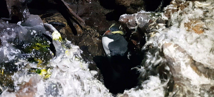 The tawaki of Doubtful Sound breed in vast caverns under washed out tree root systems. These caves sometimes extend several metres under the forest floor. And th epenguins not only breed in there. They also return to moult.