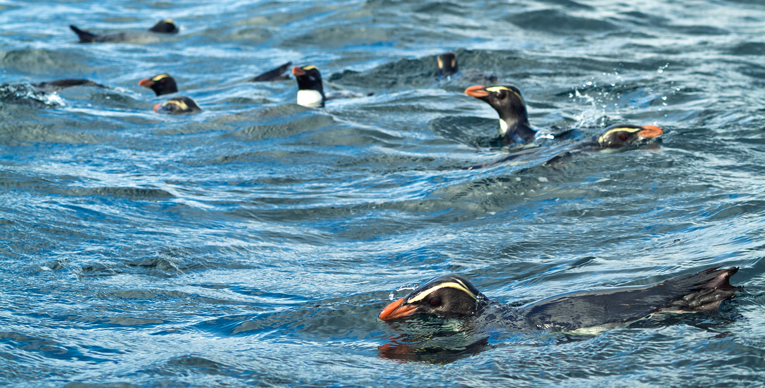 Unlike all other crested penguin species that live and breed on remote offshore islands in the subantarctic region, Tawaki breed in a continental environment, that is, along the southwestern coastline of Aotearoa/New Zealand. And not only that… although Tawaki only occur along a roughly 400 km stretch of coast (as the crow flies) – from Haretaniwha Point on the West Coast to the South Cape of Rakiura/Stewart Island – the marine habitat they inhabit as oceanic birds could not be more diverse.